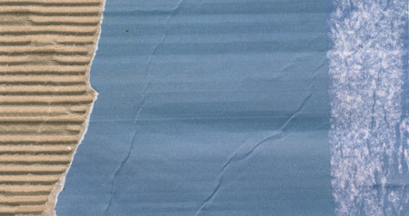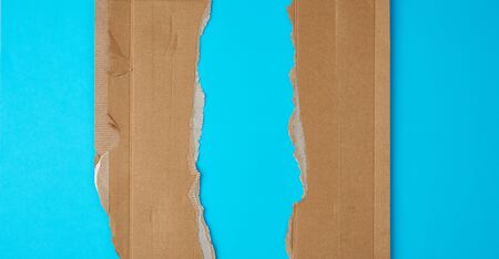 torn edges of corrugated cardboard paper on a light blue background, abstract backdrop template