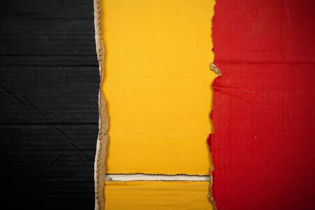 Background consisting of two parts : yellow corrugated surface and red. High quality photo