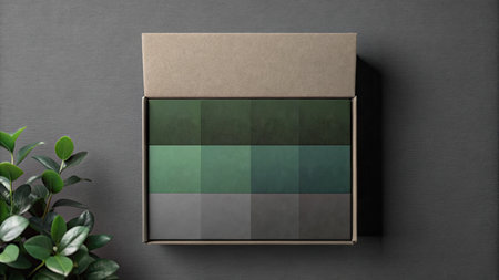 A vibrant and colorful flat lay of square boxes arranged in a grid pattern, showcasing a variety of hues perfect for background or design use.