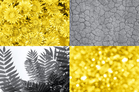 Creative collage with grey and yellow backgrounds. Color of the year concept.