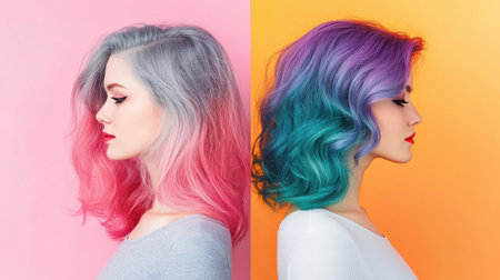 A captivating transition showcases gray hair evolving into vibrant pink and teal shades, highlighting individuality and creative expression.