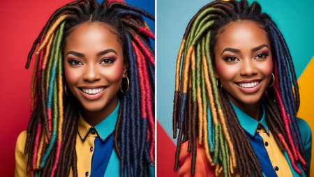 portrait of beautiful fashionable African American girl with dreadlocks trend