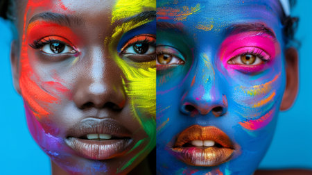 Colorful Powder on Faces Portraying Diversity and Emotion