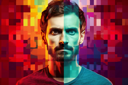 Diverse Group of Young Individuals Against a Vibrant Multicolored Background, Studio Portrait.