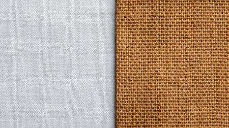 This image showcases two distinct fabric textures: smooth natural linen on one side and rough jute on the other. Ideal for design inspiration and textile projects.