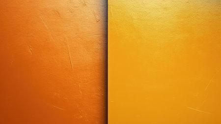 The abstract background of metal texture with empty space in tangerine orange and lemon yellow colors. 3D illustration of exuberant.