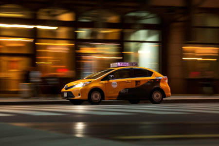 Generative AI : Yellow cab on the road in New York city at night