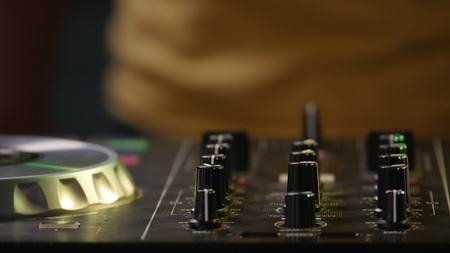 hands of the DJ on the background of the mixer