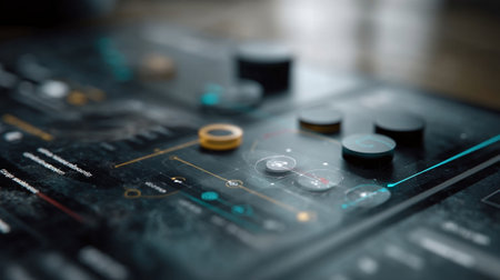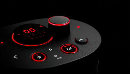 This image showcases a close-up view of a high-tech control panel featuring various buttons and a joystick, highlighting sleek design and functionality.