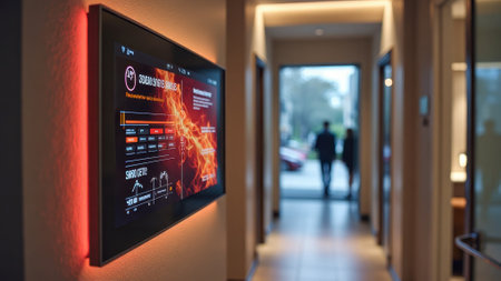 Medium shot of automated control panels with digital interfaces enabling seamless management of smart building systems.