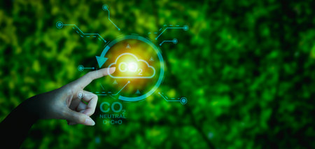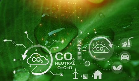 Co2, reduction of carbon emissions, carbon neutral concept. Carbon Footprint, Low carbon, Net zero greenhouse gas emissions target. sustainable development. and green business from renewable energy.
