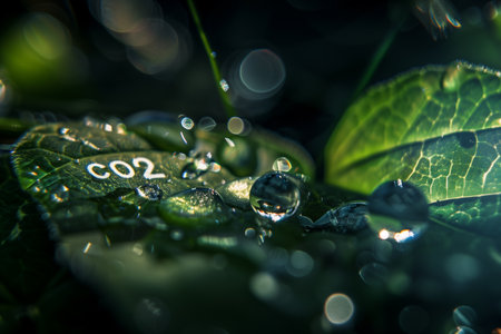 The image features an illustration of CO2, with visual elements of nature in the background. The composition uses a green and blue color scheme, with hints of graphic design. This image could be used for editorials on environmental topics, climate change discussions, or presentations on sustainability. It avoids any mention of specific locations or brands.