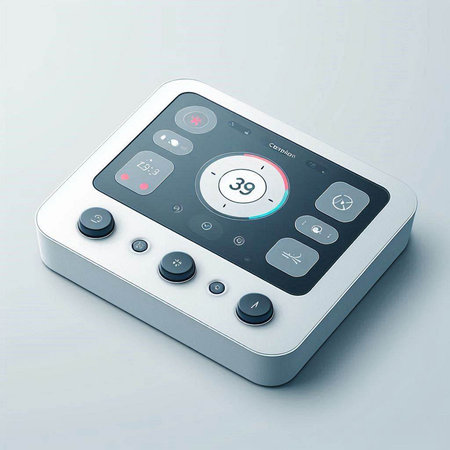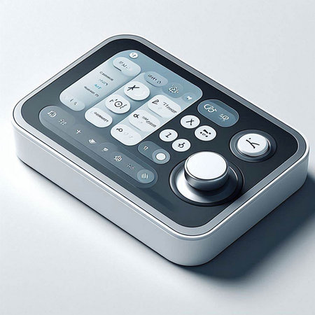 Highly rendering of a remote control on a gray background with reflection