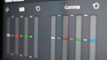 Color grading graph or RGB colour correction indicator on monitor in post production process. Telecine stage in video or film production processing. for colorist edit or adjust color on digital movie.