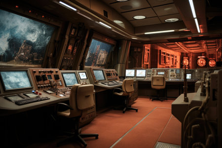 interior view of mars simulation habitat control room, created with generative ai