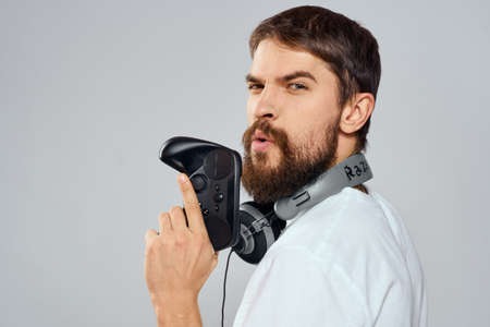 Man with gamepad and headphones