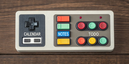 The mancave awaits. High angle shot of a console remote on a desk in a dark gaming room.
