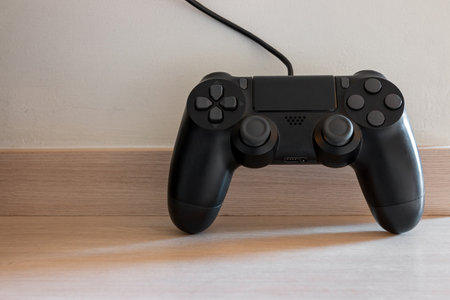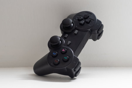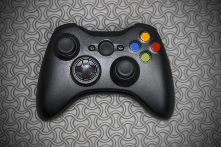 Saint-Petersburg-18 August, 2020: Joystick for game console on black background. Game console with a joystick. Home video game console.
