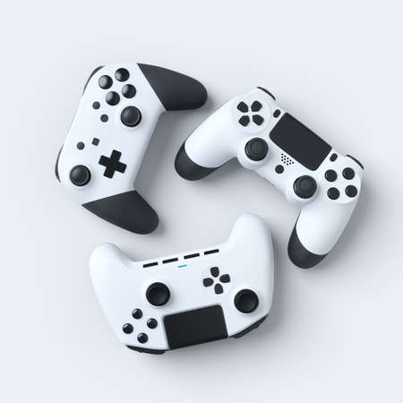 Set of white video game joysticks gamepad isolated on a white background, concept of playing games or watching TV.
