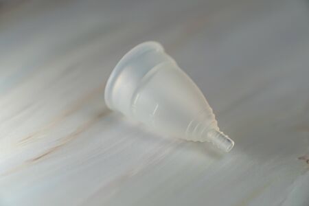 Feminine hygiene product - Menstrual cup On a wooden background.