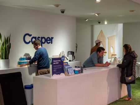 Employees working at a Casper mattress showroom store location