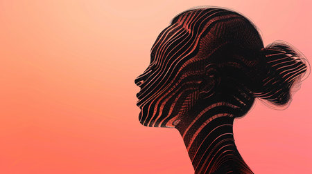 Clean 3D silhouette of a mother's profile with abstract elements, modern art style, copy space