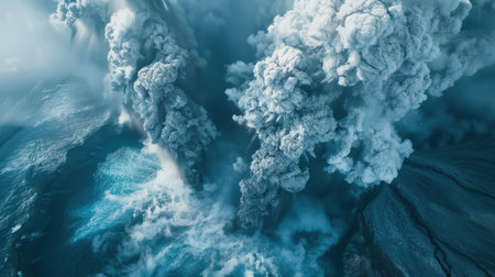 Witness the breathtaking intersection of fire and water as lava cascades into the sea, forming new landforms.
