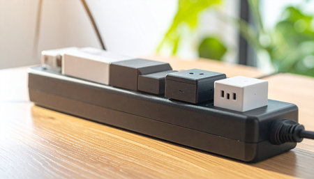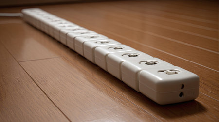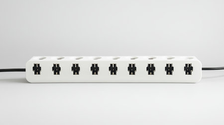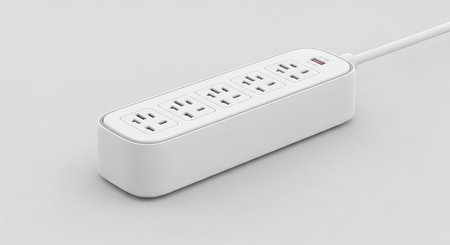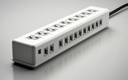 A sleek, modern power strip featuring multiple sockets ideal for powering devices in homes or offices. Perfect for organized electrical connections with safety in mind.