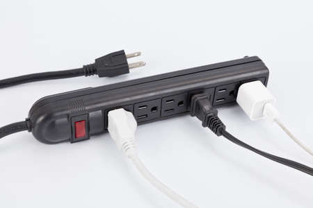 Electrical power strip and plug on white background.