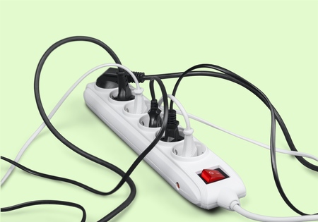 Overloaded power boards on a white background