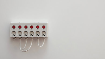 This image features a power strip with multiple outlets and red switches, ideal for modern home and office environments, showcasing functionality and sleek design.