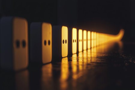 Domino Chain Reaction with Dramatic Lighting for Creative Concepts