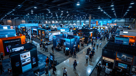 Vibrant high tech convention center showcasing innovative exhibits and engaging technology displays