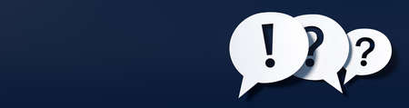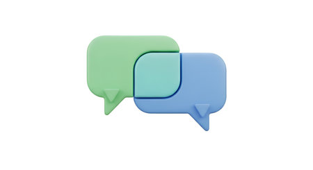 An image featuring two speech bubbles, one white and one blue, engaged in a conversation against a light blue background.