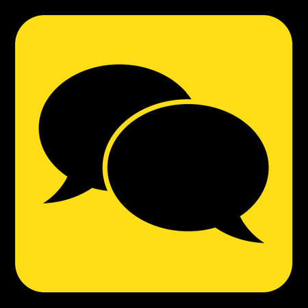 yellow rounded square information road sign with black two speech bubbles icon and frame