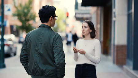 Young couple having a serious conversation outdoors