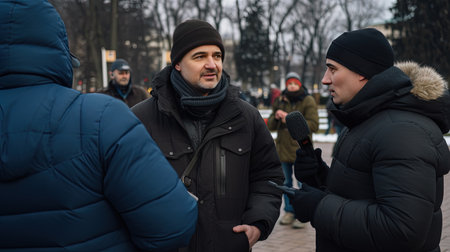 Reporters interacting with the public, assessing election sentiments through interviews, capturing the thoughts and expectations of voters.