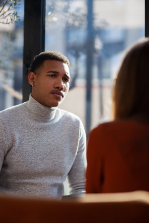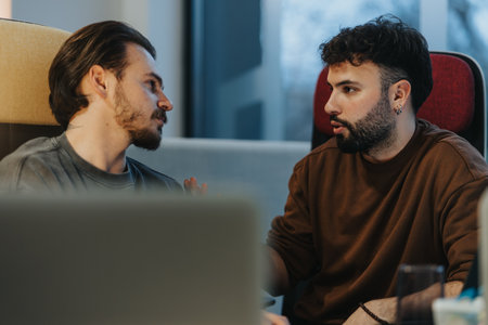 Two individuals having a thoughtful discussion in a casual setting
