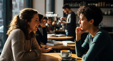 Catching Up and Connecting: Friends Enjoy Coffee and Conversation at a Cozy Cafe