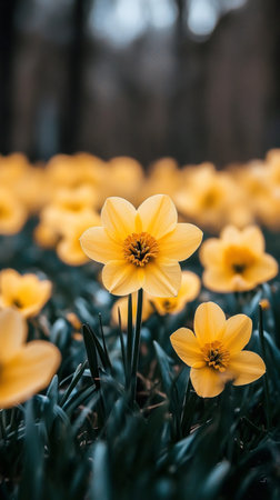 Beautiful yellow daffodils blooming in a meadow during springtime, representing renewal and the beauty of nature