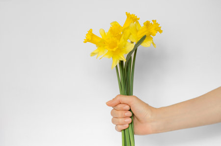 Holding a narcissus in the hand