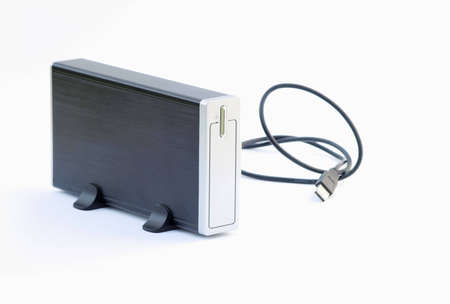 A external hard drive with usb cable on white background