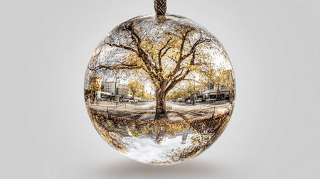 A captivating image showcasing a cityscape reflected within a crystal ball, offering a unique and artistic perspective.