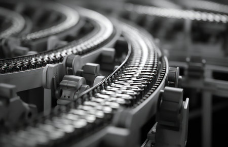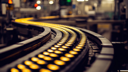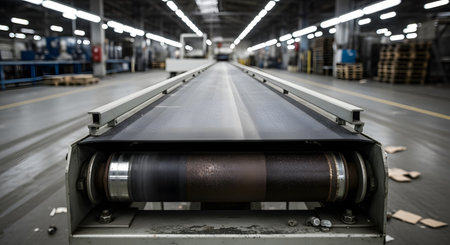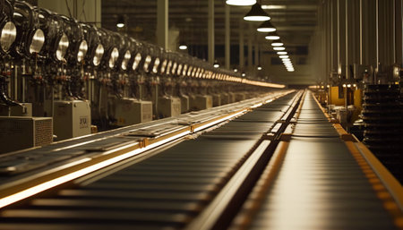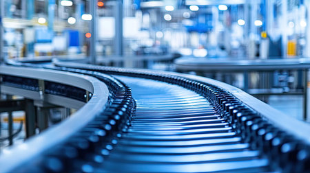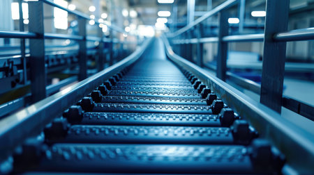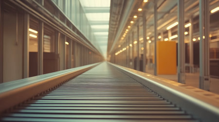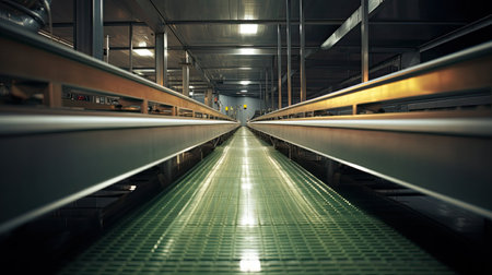 Clean conveyor belt in a high-tech factory, showcasing the efficiency of modern production lines.