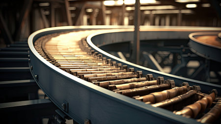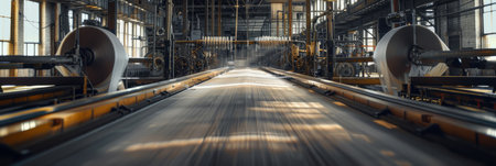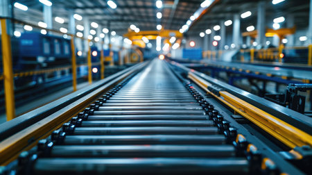 An efficient industrial conveyor system in manufacturing facility, showcasing advanced technology and streamlined operations