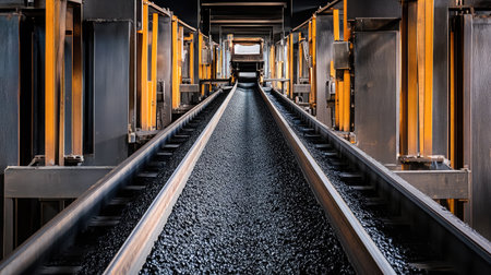 Conveyor belt continually moves raw materials through a factory, showcasing precise mechanisms that ensure efficient transport in an industrial environment.