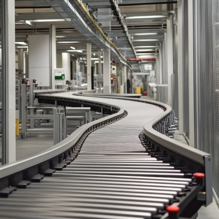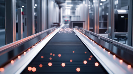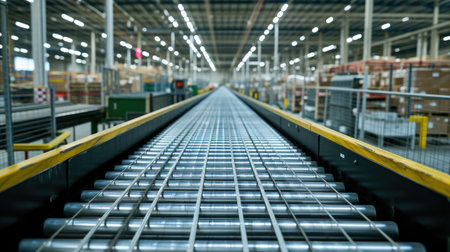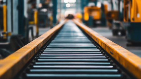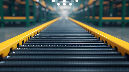 Clean conveyor belt in a high-tech factory, showcasing the efficiency of modern production lines.
