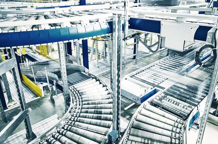 Photo of a modern belt conveyor at the post office, where mail items are processed and sorted automatically
