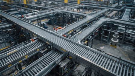An efficient industrial conveyor system in manufacturing facility, showcasing advanced technology and streamlined operations