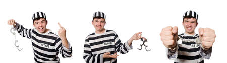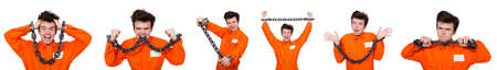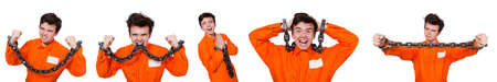 Young inmate with chains isolated on the white